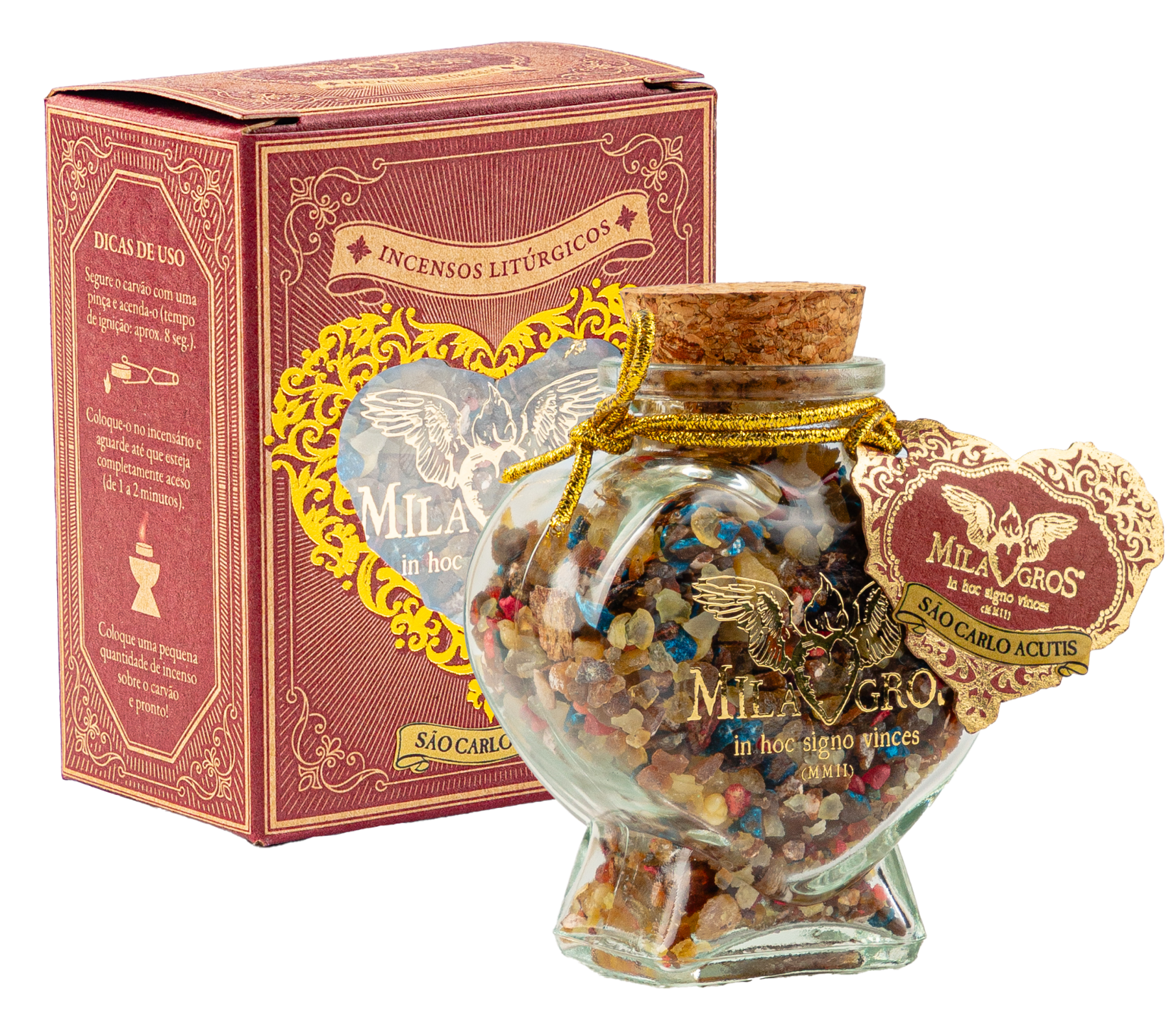 Inspirado no espírito vibrante e jovial de Carlo Acutis, este incenso, criado pela Milagros, traz em seus grãos as cores das vestes da sua foto mais conhecida. Seu aroma refrescante, com notas cítricas, lavanda e nardo, criam uma experiência olfativa que evoca a jovialidade deste “apóstolo da internet”.