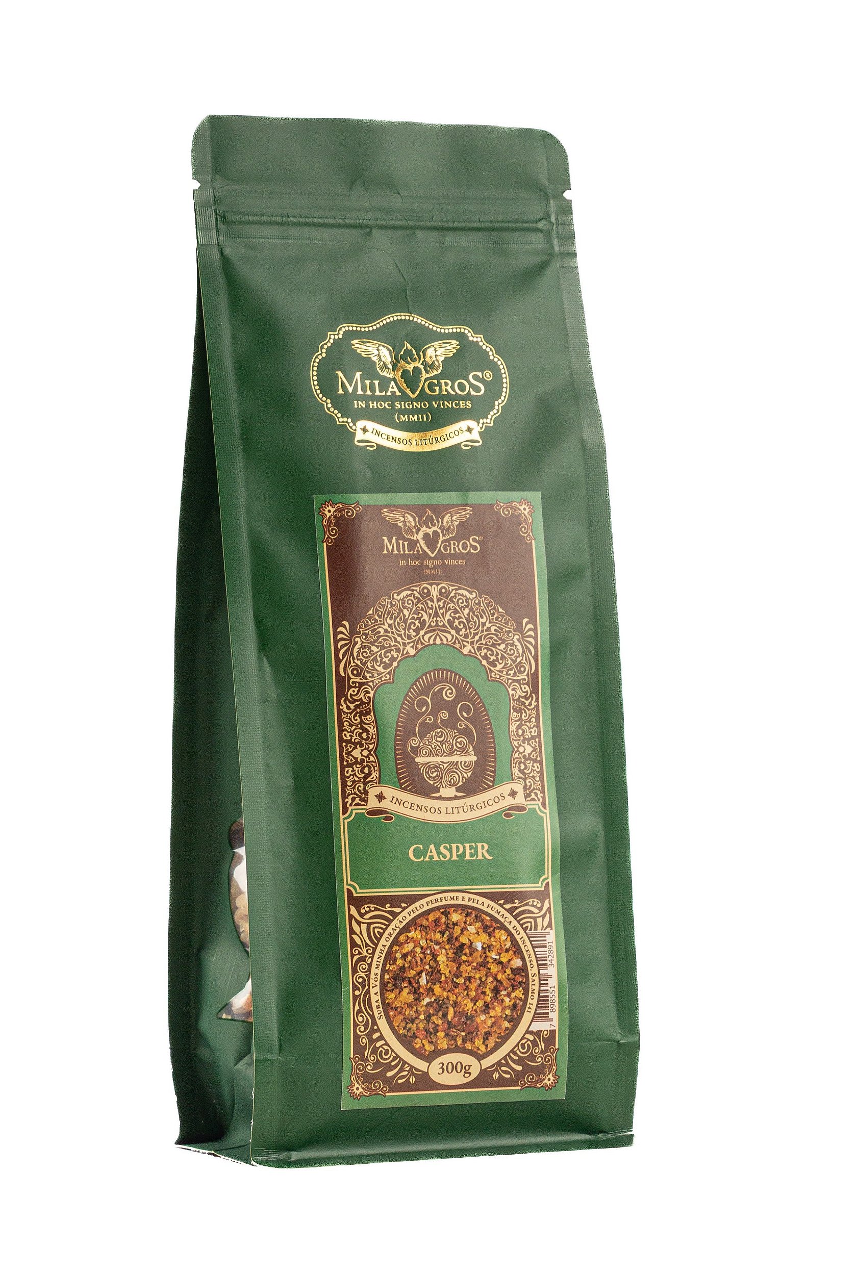 Nova embalagem com fechamento zip contendo 300g de incenso Casper.