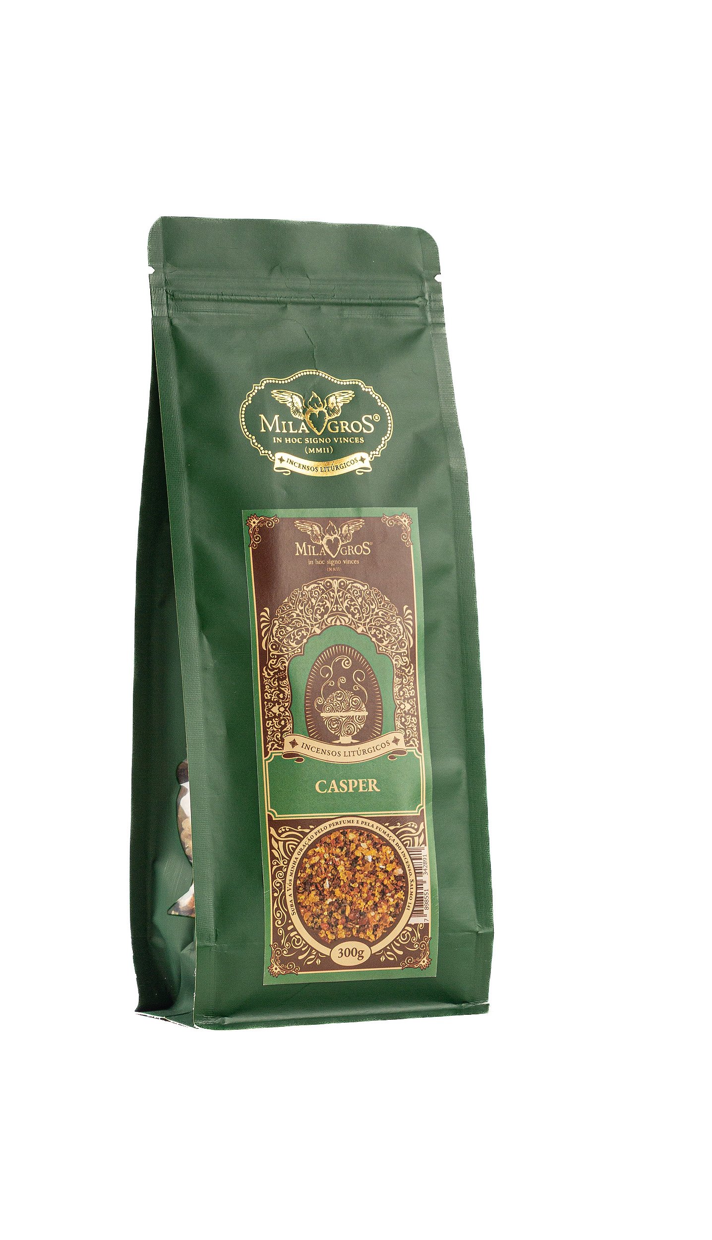 O incenso Casper também está disponívelestá disponível em saquinho de 9g, barrica de 50, 125, 300 e 500g, frasco Cuore 47g, novos sacos de 300 e 500g com fechamento zip e também em saco Refil 1kg.